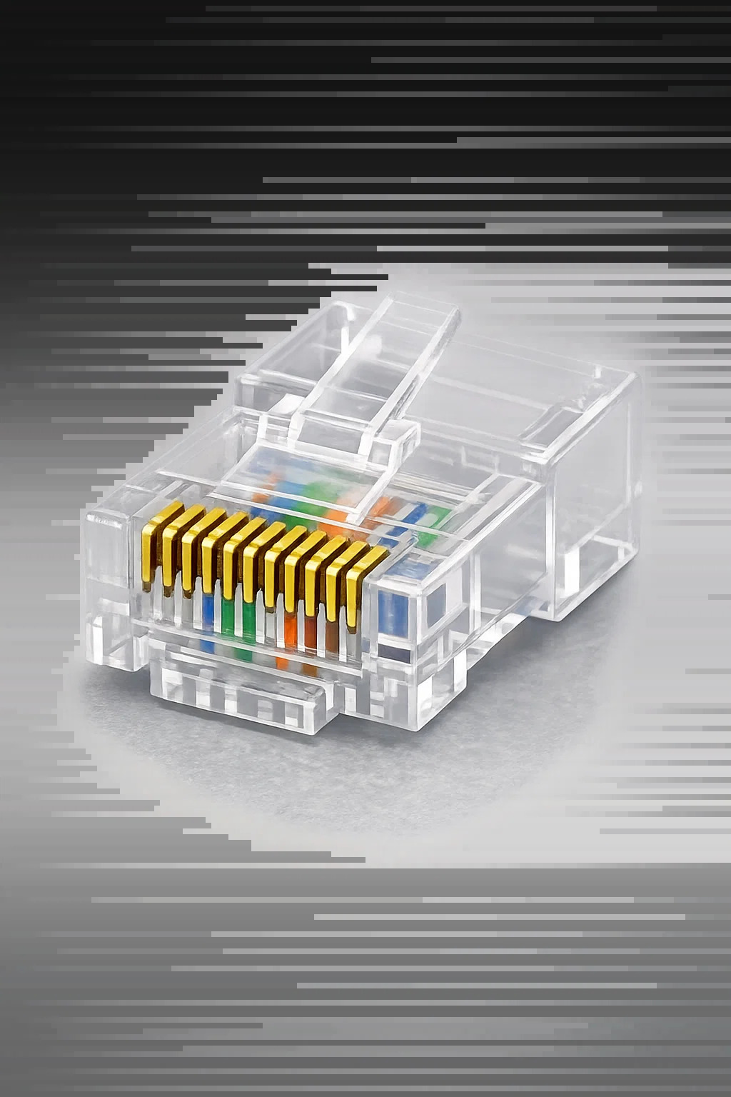 Dette uskjermet 10P8C Cat.5e modulær plugg er en litt "spesiell" nettverkskabelkontakt. Selv om den ligner veldig på nettverkskontaktene vi vanligvis ser på datamaskiner, har den en interessant liten detalj i konstruksjonen.