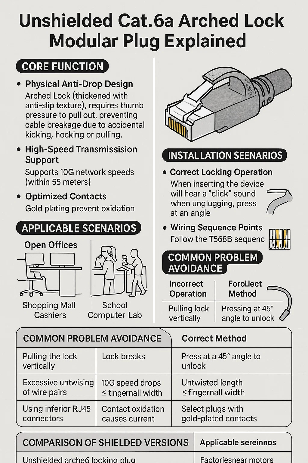 Uskjermet Cat.6a Arched Lock Modular Plug Forklart